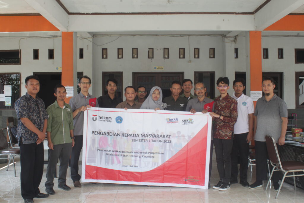 Dalam rangka kegiatan itulah, beberapa dosen di Program Studi S1 Terapan Teknologi Rekayasa Multimedia (S1 TRM), Fakultas Ilmu Terapan, Universitas Telkom, melakukan kunjungan ke SMK Teknologi Karawang. Tanggal 22 Juli 2023, tiga dosen TRM, yaitu Dr. Ismail, S.Si., M.T., Anang Sularsa, S.T., M.T., dan Tafta Zani, S.T., M.T., berkunjung ke lokasi SMK Teknologi Karawang di Dusung karangmulya, RT.008/RW.002, Kel. Lemahmulya, Kec. Majalaya, Kab. Karawang, Jawa Barat. Ketiga dosen disambut oleh Kepala Sekolah SMK Teknologi Karawang, yaitu Herni Yuningsih, S.E., M.Pd., dan Wakil Kepala Sekolah Bidang Kurikulum, Septian Aep Nugraha, M.Pd. Dalam abdimas kali ini, dilakukan 3 kegiatan sekaligus, yaitu serah terima aplikasi berbasis web untuk penilaian siswa, serah terima dan sosialisasi aplikasi Learning Management System (LMS) untuk SMK Teknologi Karawang, serta pelatihan pengenalan IoT (Internet of Things) kepada beberapa guru dan siswa khususnya di jurusan Teknologi Komputer dan Jaringan (TKJ).